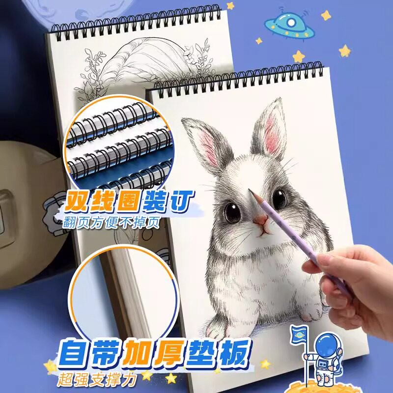 A4线圈素描本美术生专用画本加厚硬壳速写本小学生图画本空白画画本子儿童幼儿园A5手绘写生水彩马克笔绘画A3