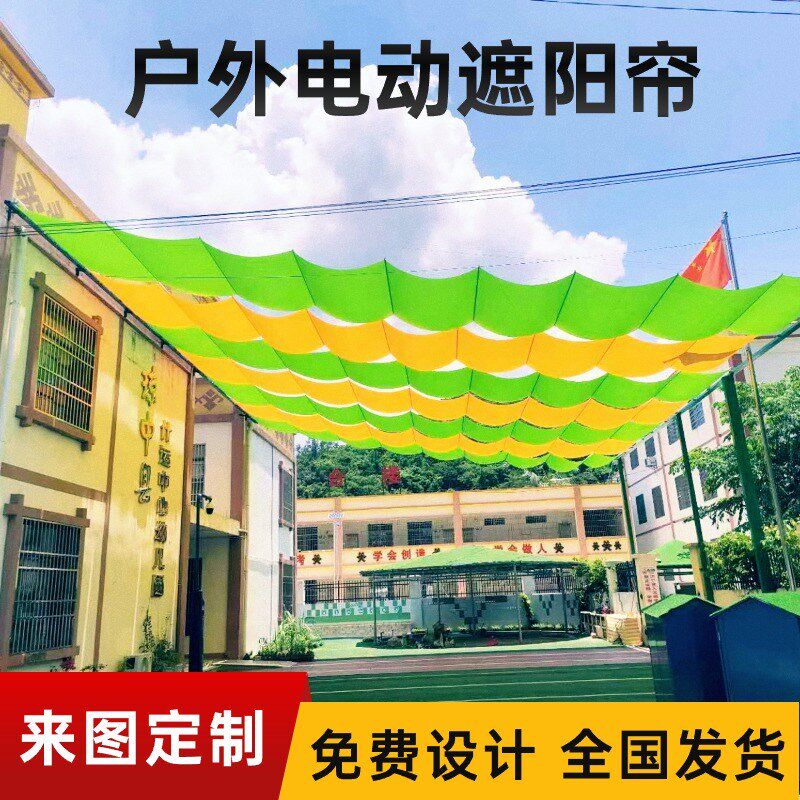 厂家直销幼儿园操场户外学校楼顶球场遮阳棚电动防晒遮阳帘FCS