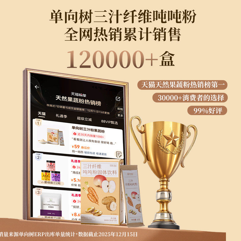 单向树三汁吨吨粉天然果蔬粉顺畅食用膳食纤维肠道每日冲泡饮料由