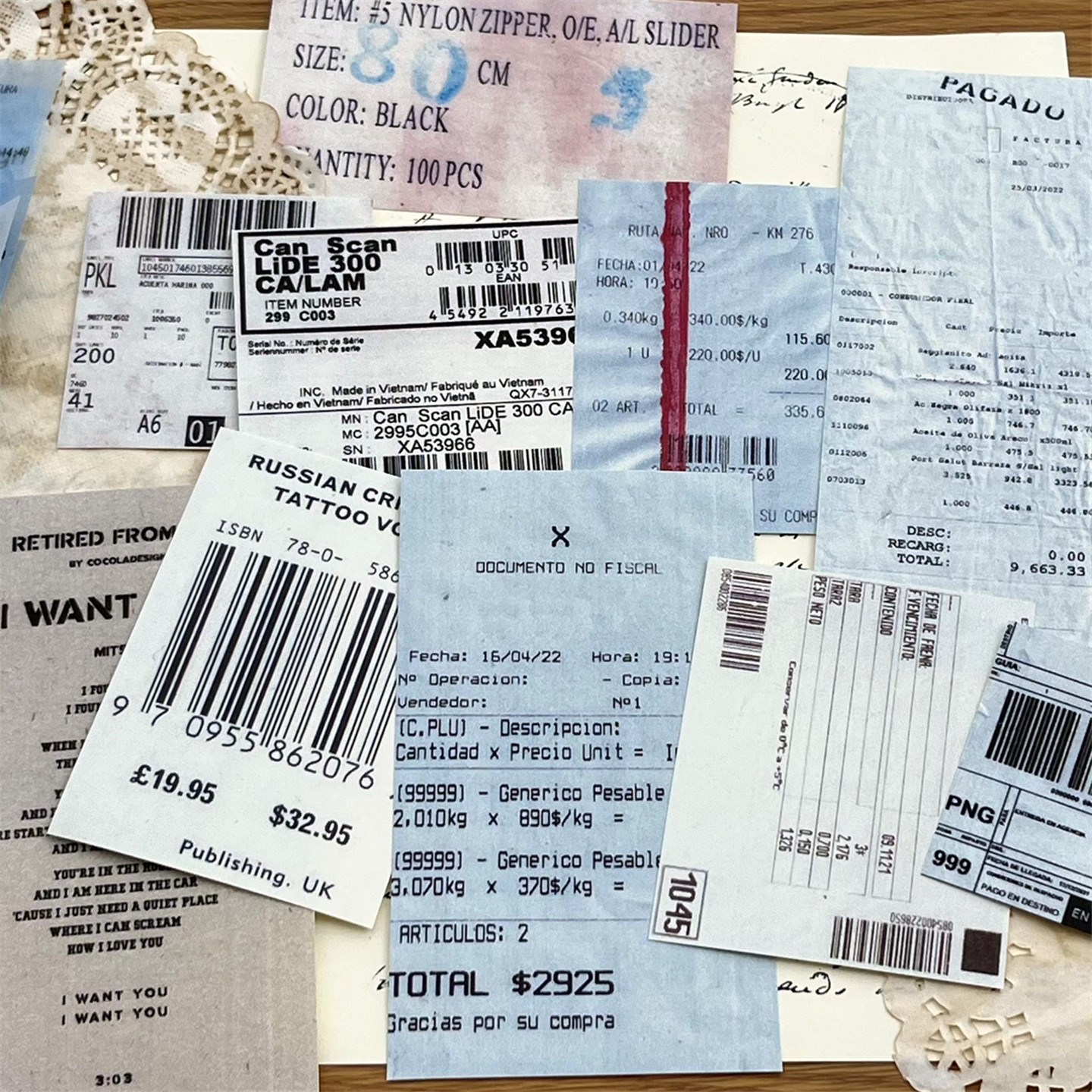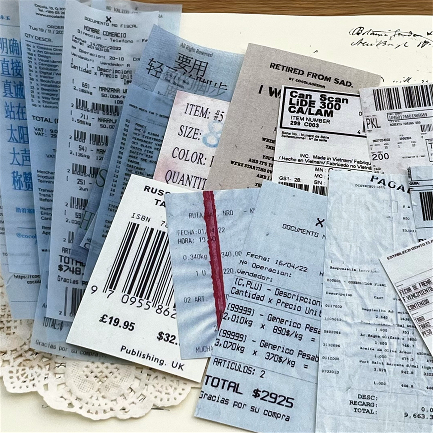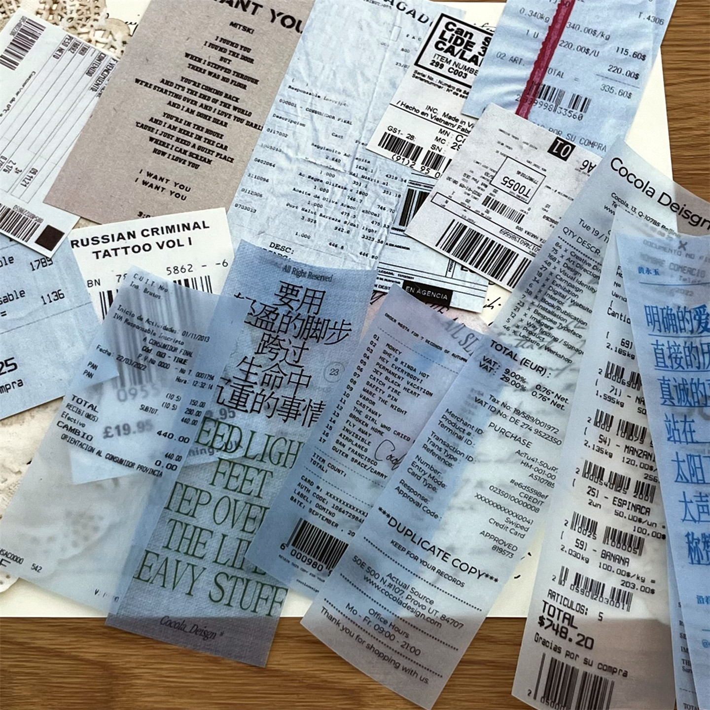 junk 饰拍照背景素材纸 journal复古票据硫酸纸英文小票手帐拼贴装