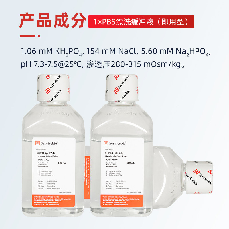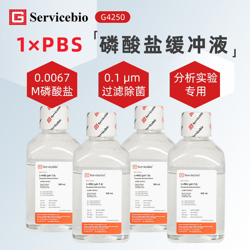 PBS缓冲液 G4250 M磷酸盐 7.4 0.0067 Servicebio赛维尔由