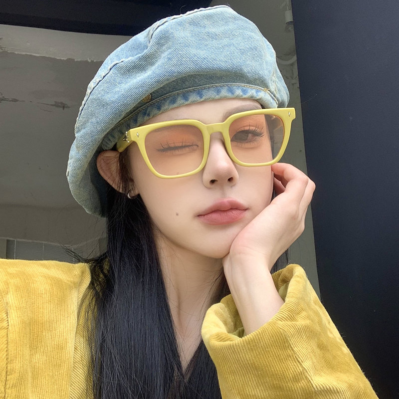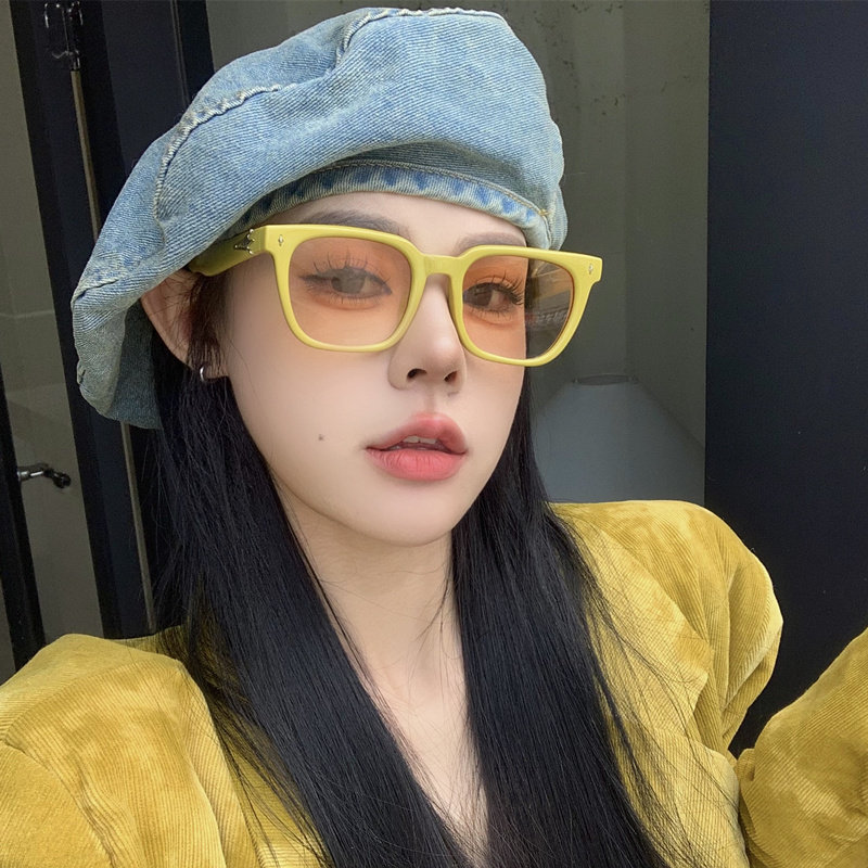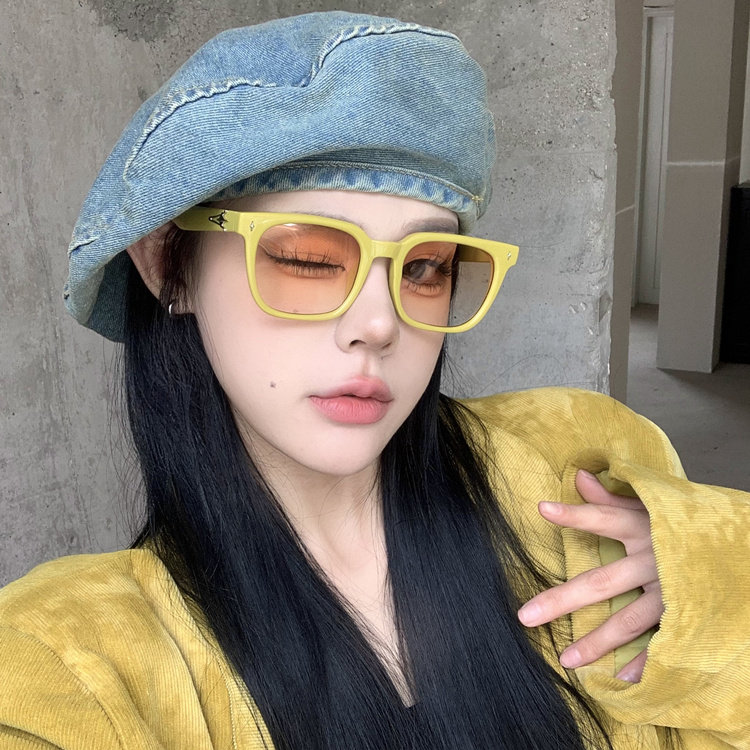 韩版 黄框渐茶色方形墨镜女潮高级感ins网红方圆脸显瘦太阳镜 夏季