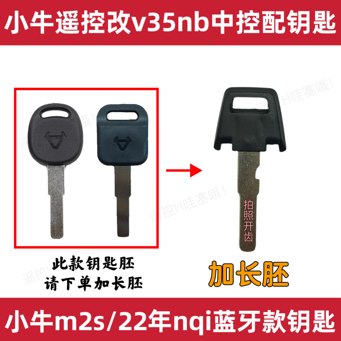 小牛Nqi 改中控专用遥控器钥匙胚v35nb钥匙拍照开齿 22年m2s蓝牙款由