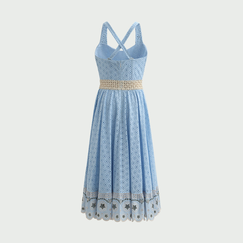 JASON 新款 镂空绣花露背收腰新中式 裙子长裙连衣裙