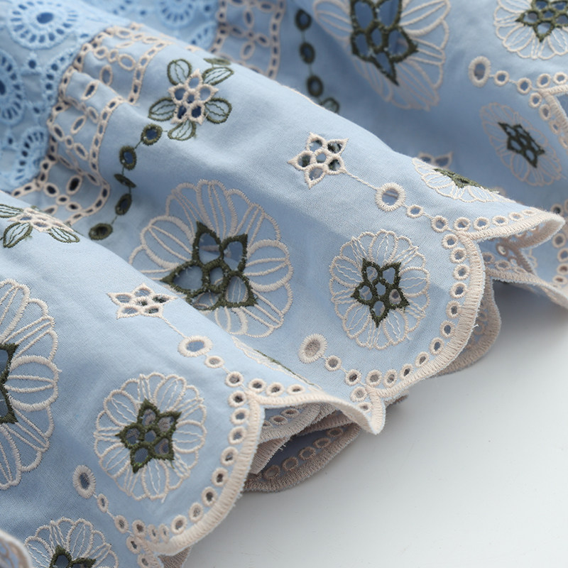 安妮不火100棉 收腰初恋小白裙 重磅满幅绣花蕾丝连衣裙女微胖大码