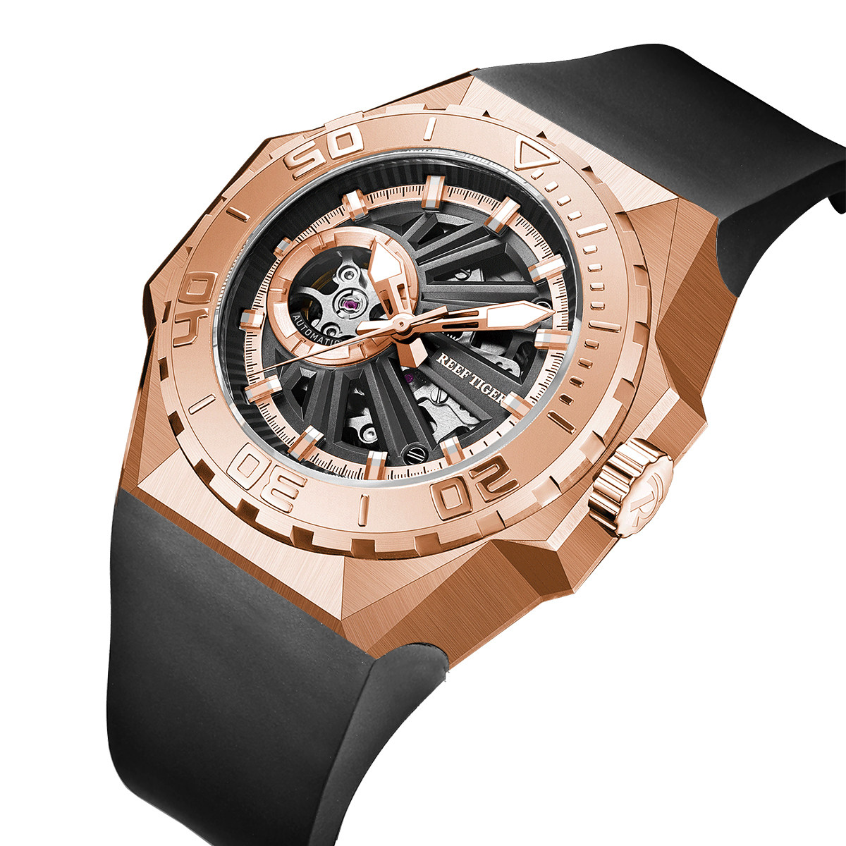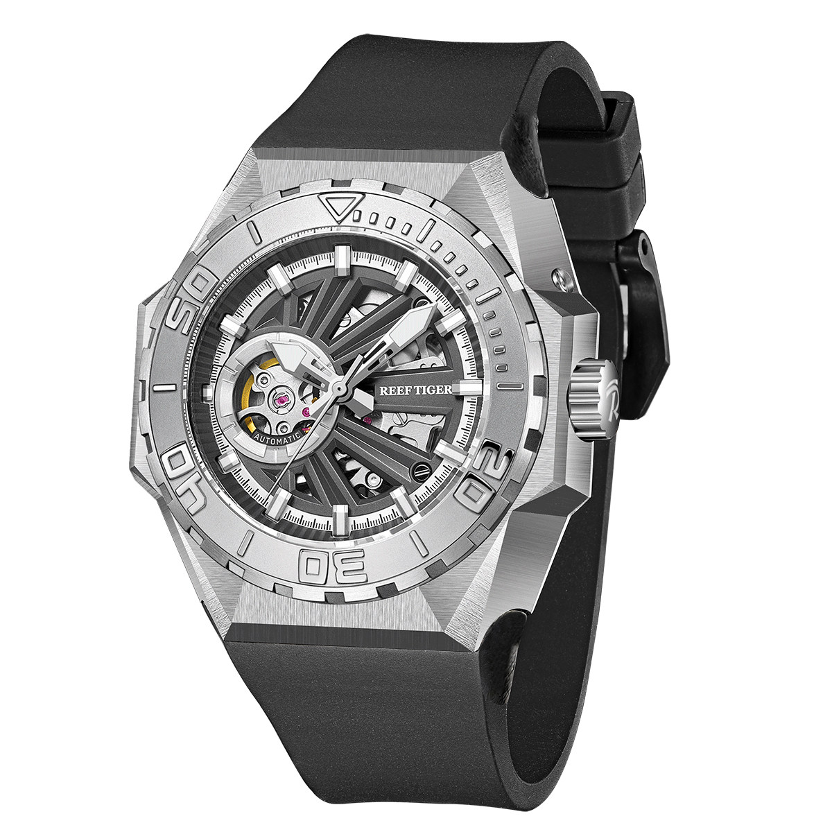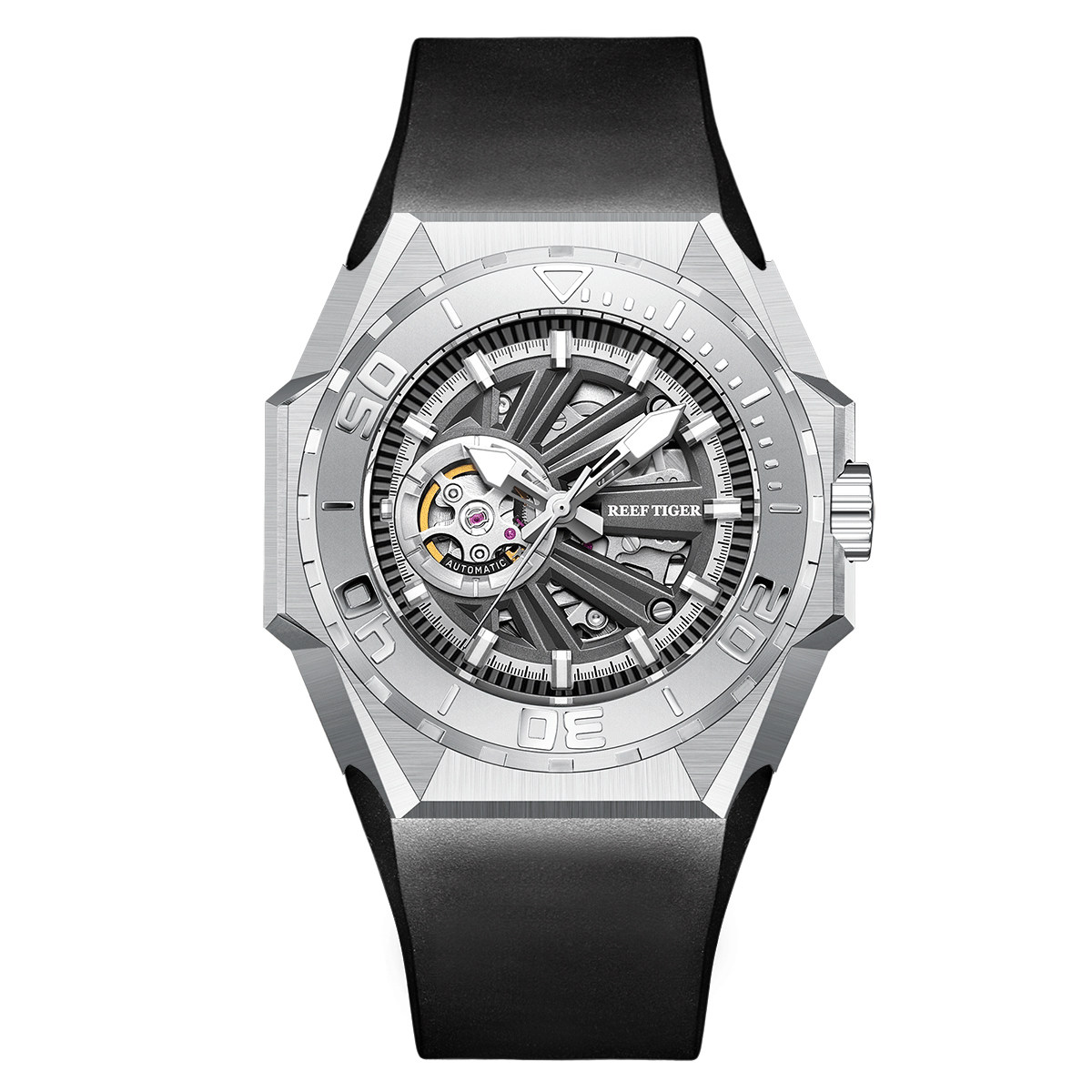 大表盘镂空进口手表男 联名瑞夫泰格潮流潜水夜光全自动机械表个性
