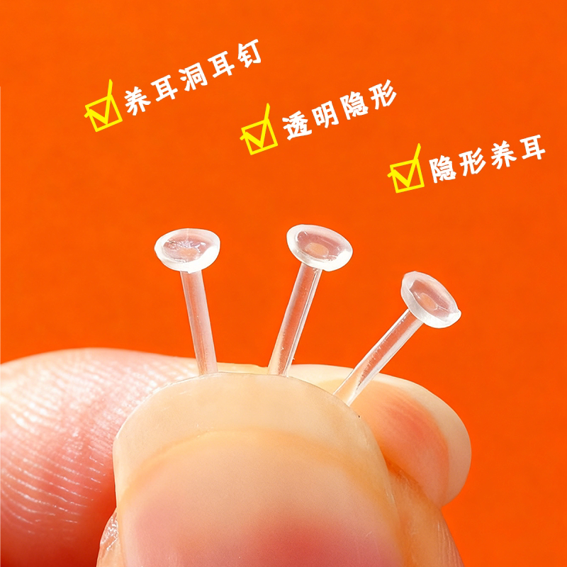 养耳洞树脂耳钉透明耳棒隐形耳针防堵耳堵硅胶耳棍学生免摘耳骨钉