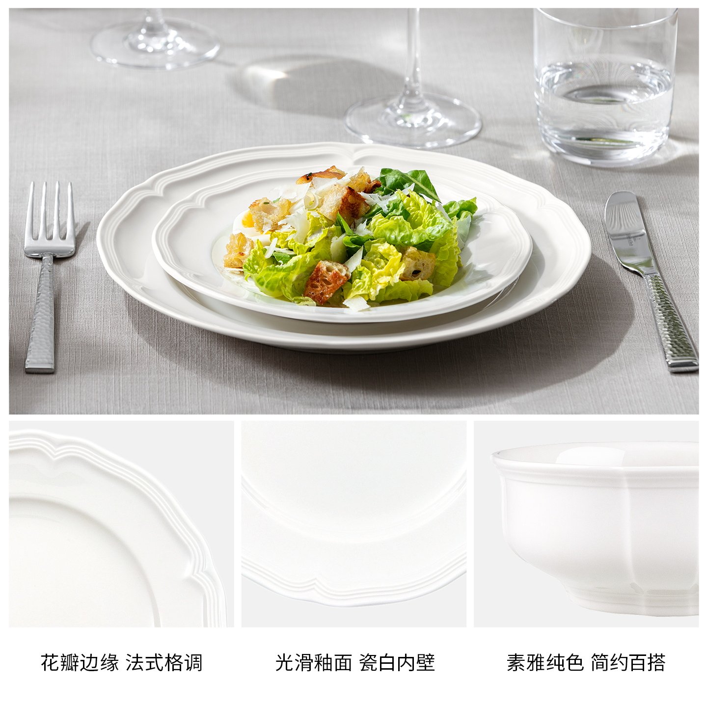 为您提供商品villeroyboch德国唯宝庄园纯白瓷奶油风碗盘餐具套装 乔迁礼赠的详细介绍,