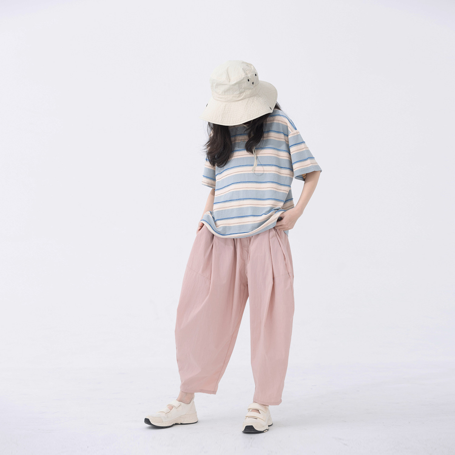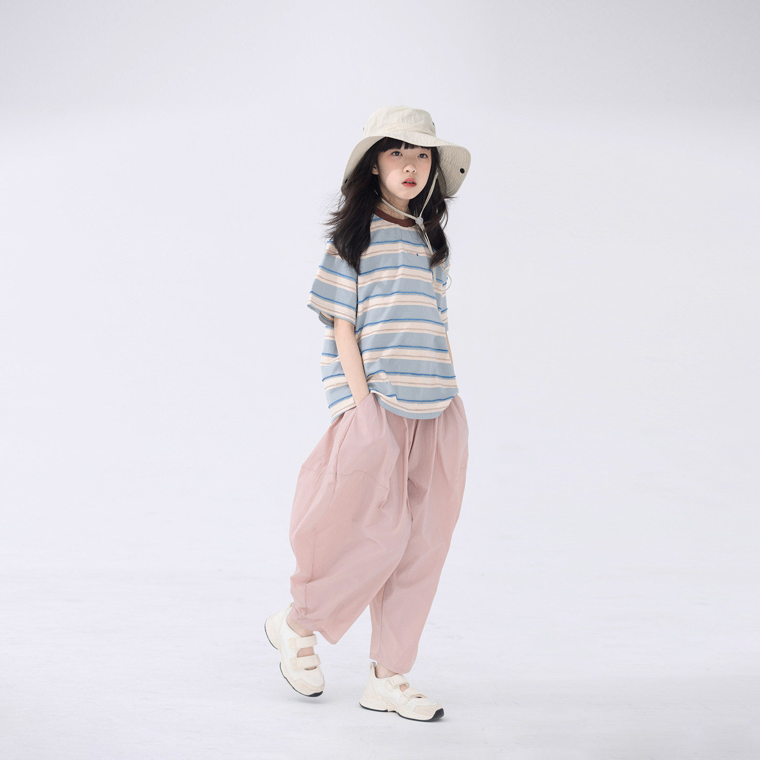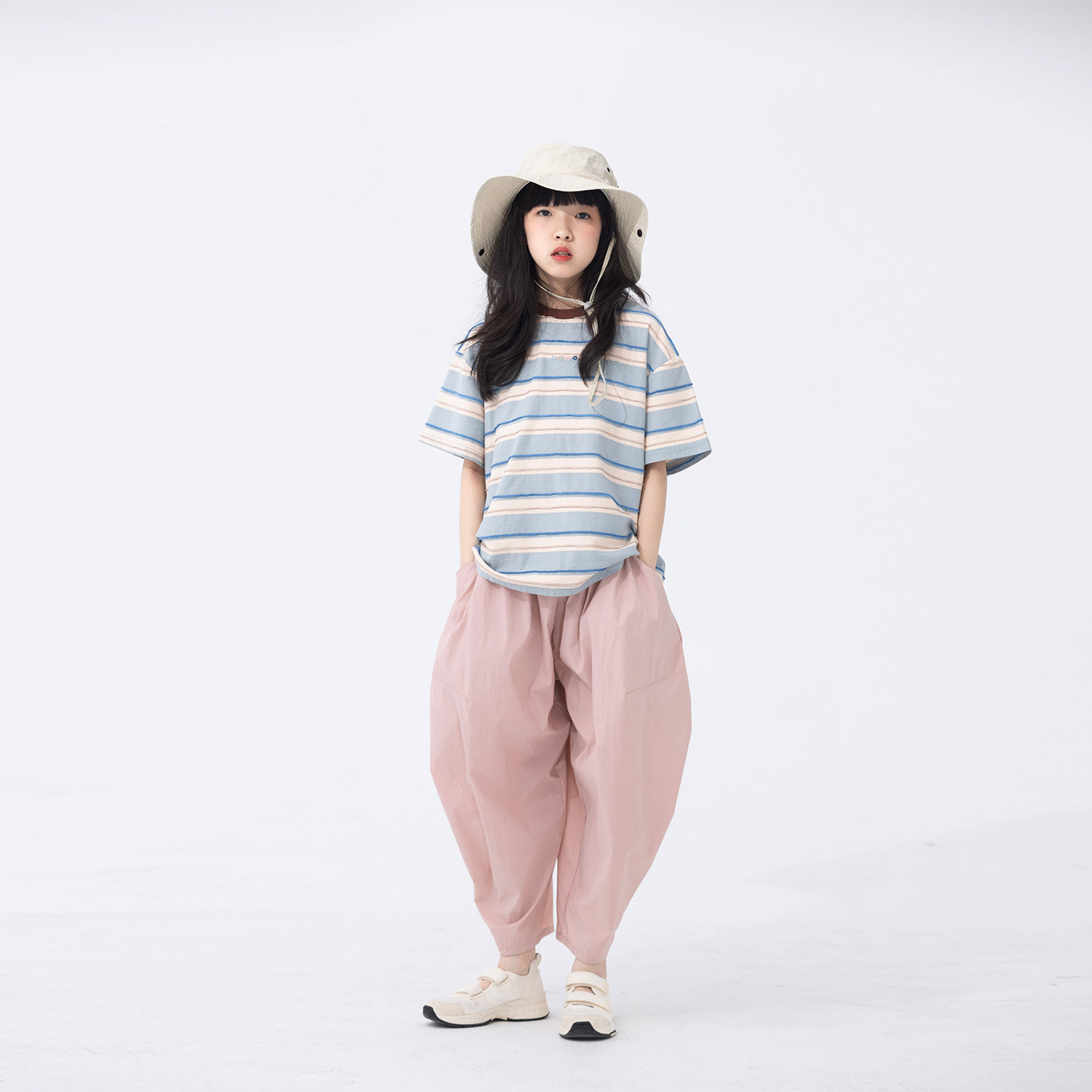 春夏清新男女童宽松萝卜裤 芍药粉百搭廓形空气裤 小小大星球童装由