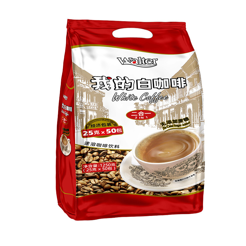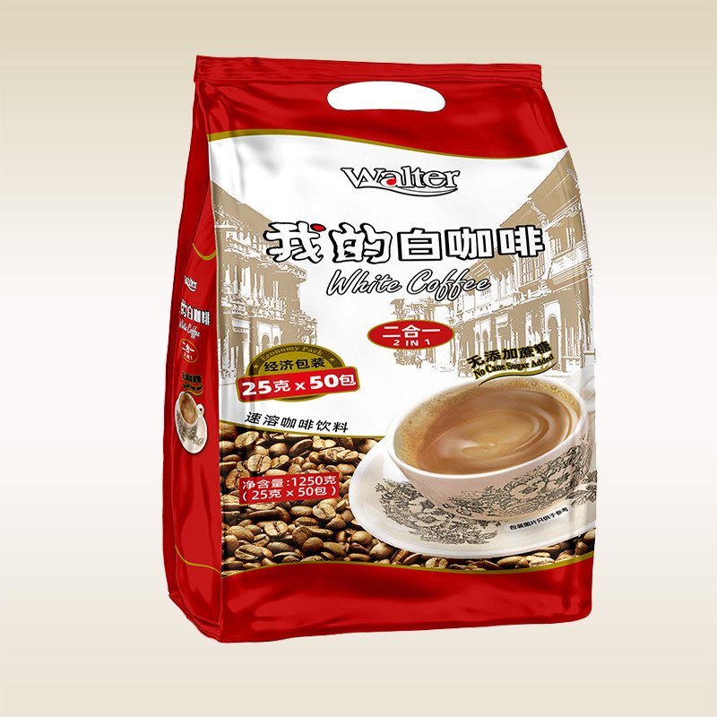 进口速溶粉无蔗糖添加50条装 白咖啡二合一1250g马来西亚原装 我