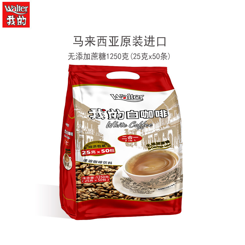 进口速溶粉无蔗糖添加50条装 白咖啡二合一1250g马来西亚原装 我由