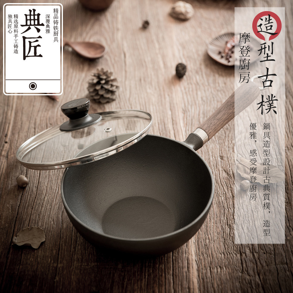 为您提供商品典匠炒锅铸铁锅小铁锅家用无涂层平底炒菜锅生铁锅加厚20cm电磁炉的详细介绍,