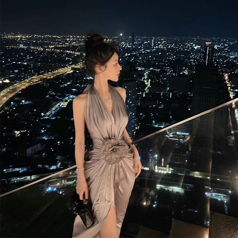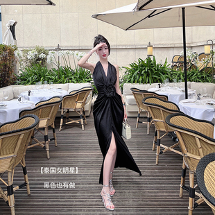 du家整条纯手工制作花朵挂脖露背轻奢礼服裙连衣裙 泰国女明星