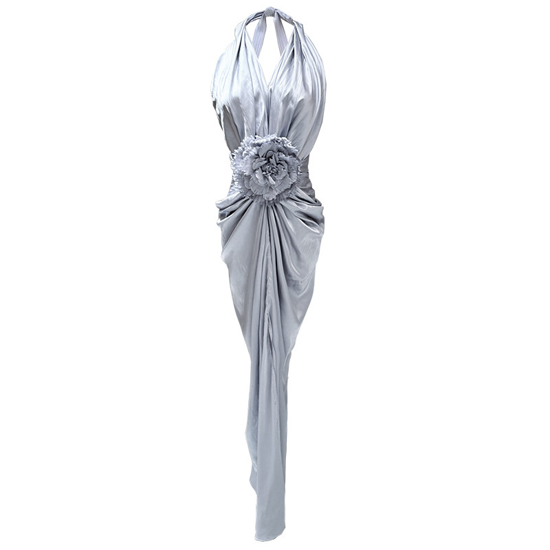 du家整条纯手工制作花朵挂脖露背轻奢礼服裙连衣裙 泰国女明星由
