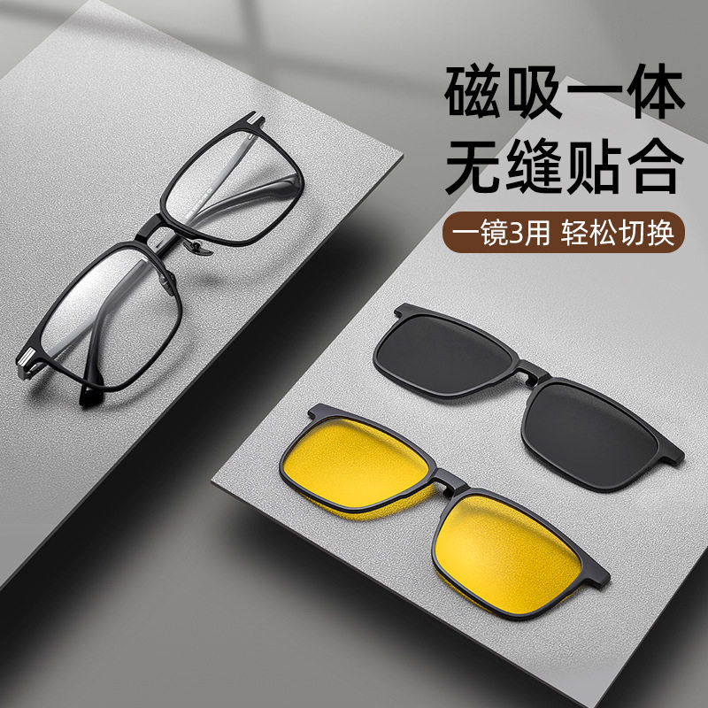 三合一可配度数防蓝光方框套镜太阳镜开车专用潮 磁吸眼镜墨镜男款