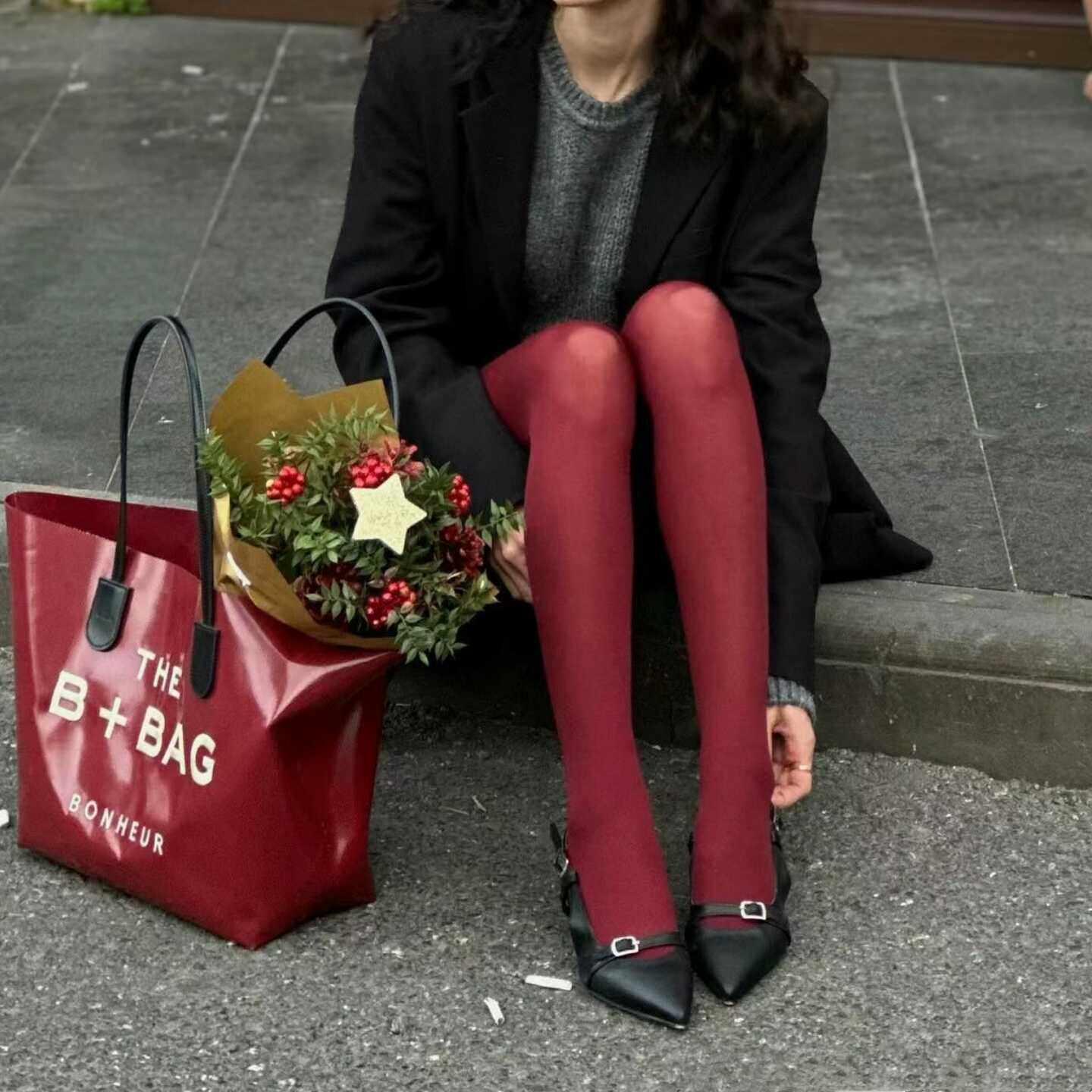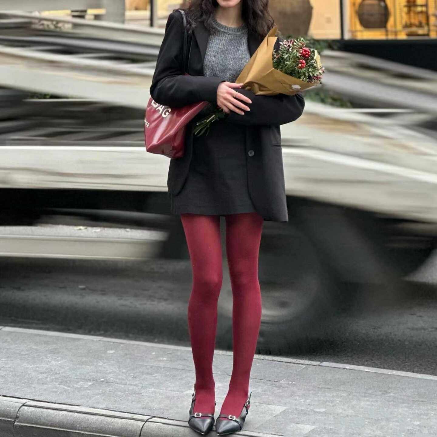 女2025新款 杨幂同款 小野和子打底裤 袜加绒冬外穿 灰色羊毛连裤