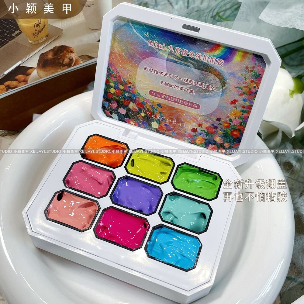 小颖美甲彩虹雨九宫格拍拍胶马卡龙免洗彩绘美甲光疗甲油胶2.5g由