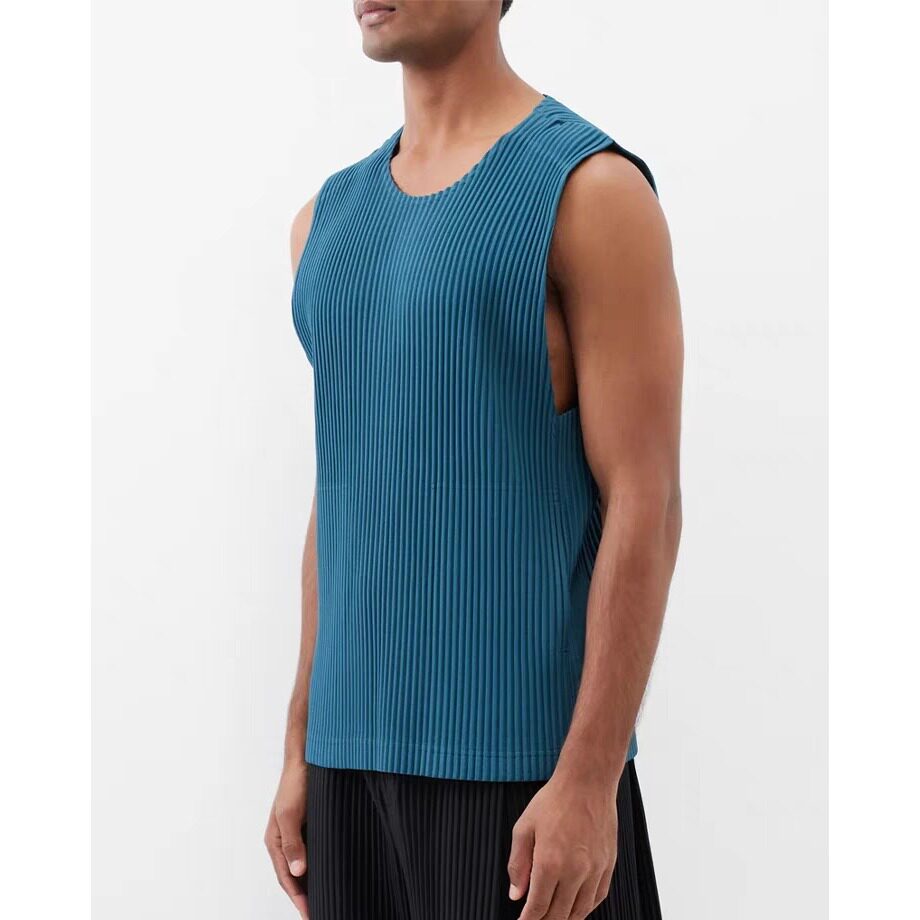 经典 打底背心圆领休闲马甲男有侧口袋JE157 夏季 三宅衣库褶皱男装由
