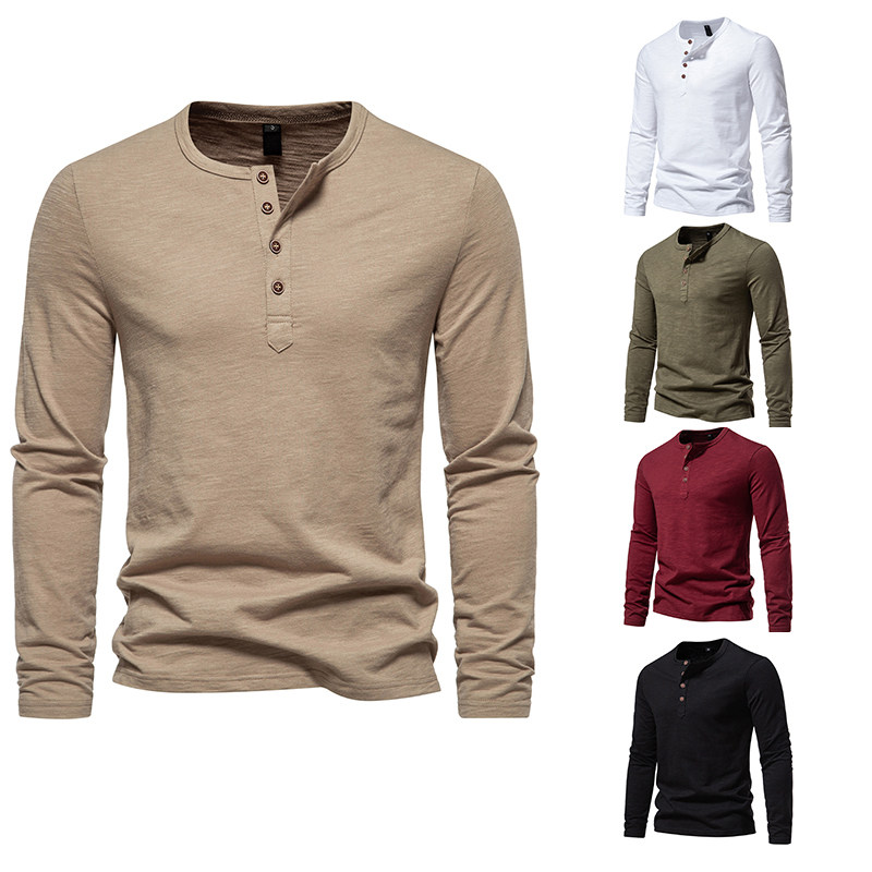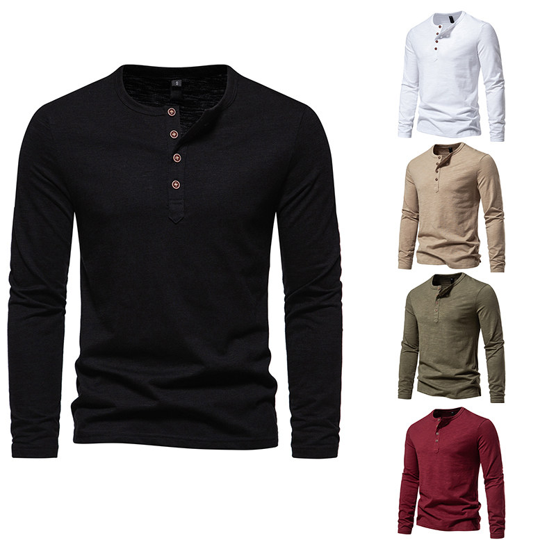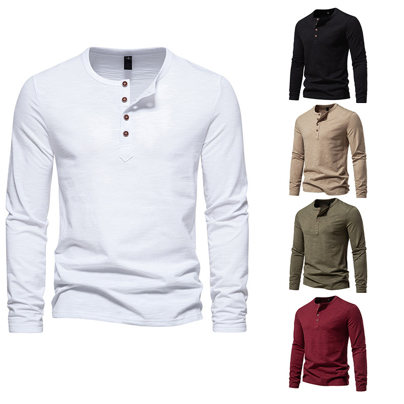 新款 2023秋季 纯棉外贸大码 shirt 拼色亨利长袖 T恤T 亚马逊男士 特价由