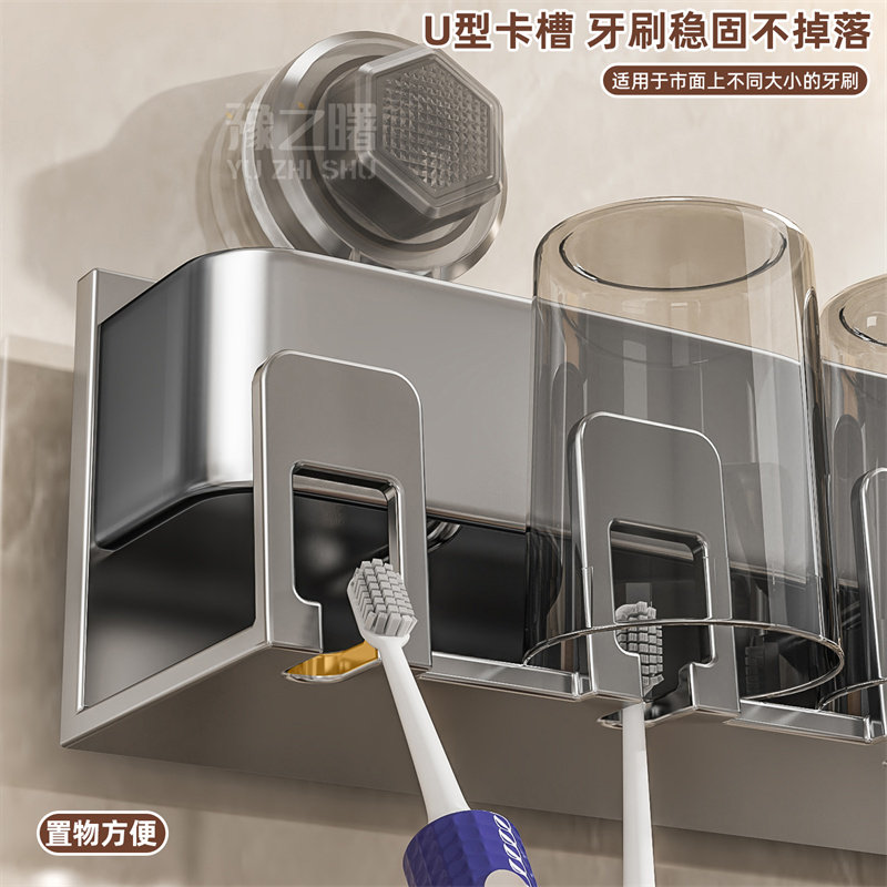免打孔卫生间牙具座牙膏收纳浴室 牙刷牙杯壁挂置物架电动牙刷套装