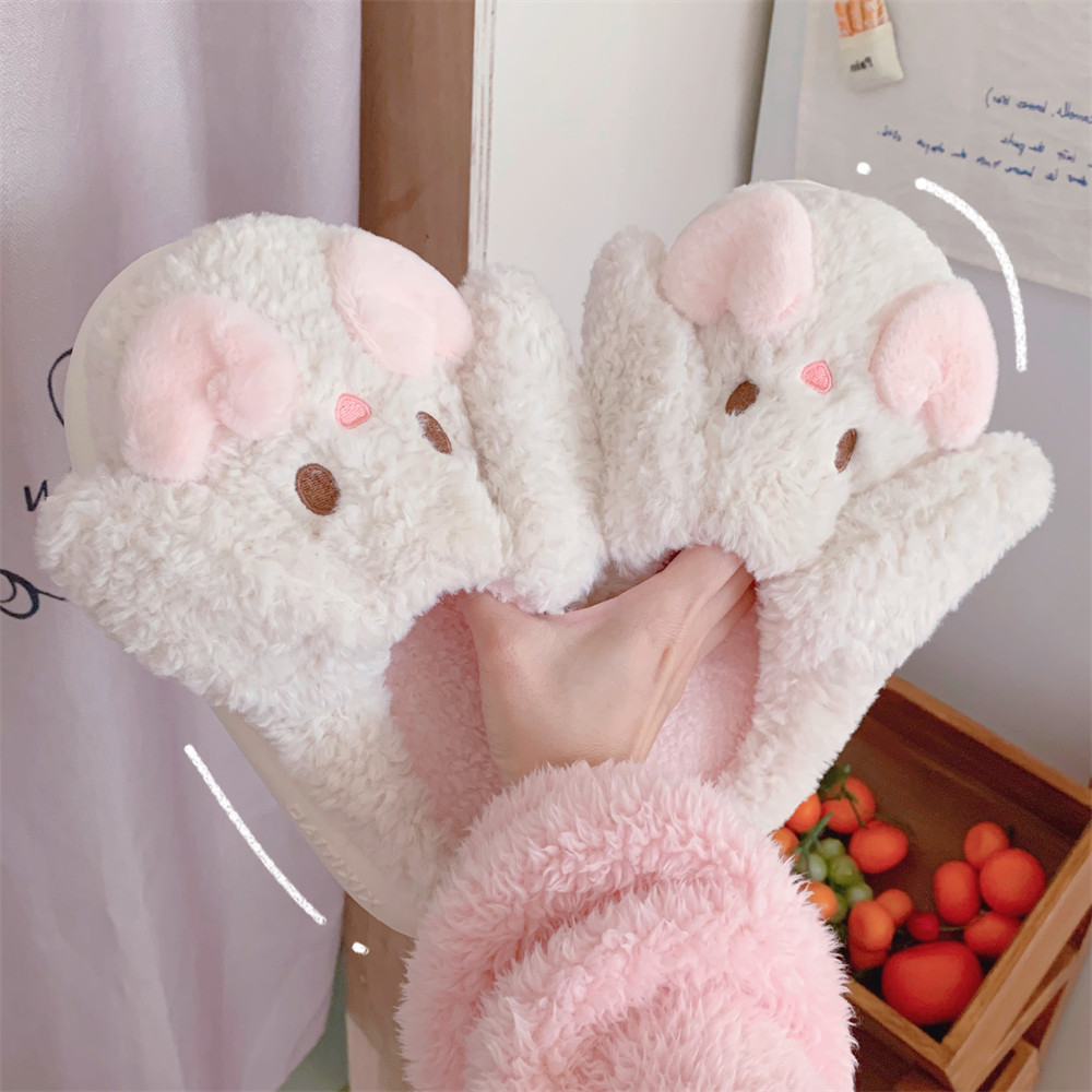 外穿防滑厚底居家全包跟加绒保暖棉鞋 秋千 女冬季 可爱米菲兔棉拖鞋