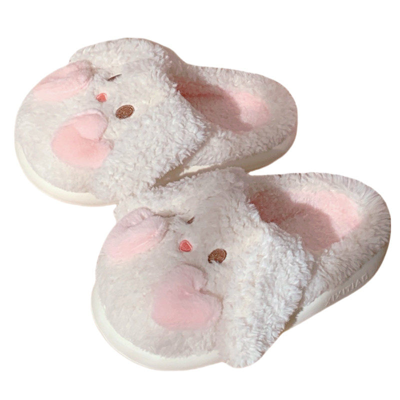 女保暖软底秋冬学生休闲家居月子鞋 ins 立体爱心小兔棉拖鞋 细细条