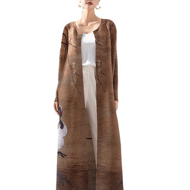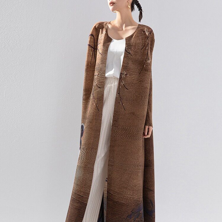 时尚 褶皱褶皱风衣外套女新款 女装 2024春季 气质设计感圆领开衫