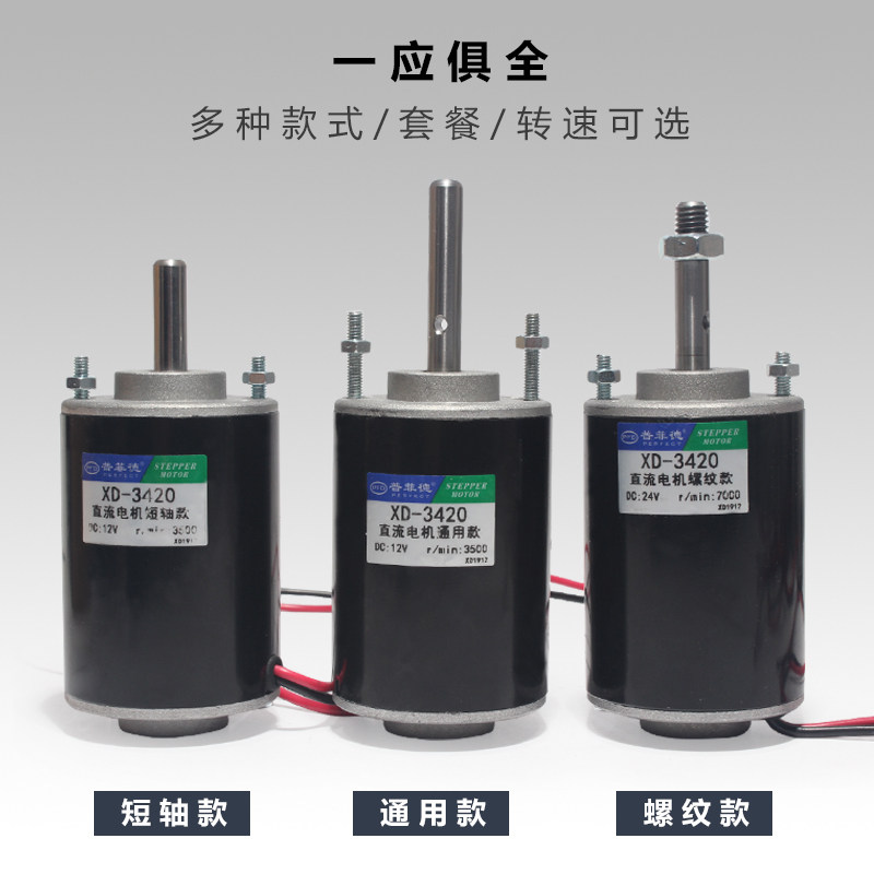 30W直流高速电机XD 3420正反转调速微型马达12V24V螺纹短轴通用款