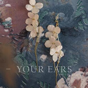 仙女气质花朵流苏耳环耳夹小红书同款 EARS原创设计白色长款 YOUR