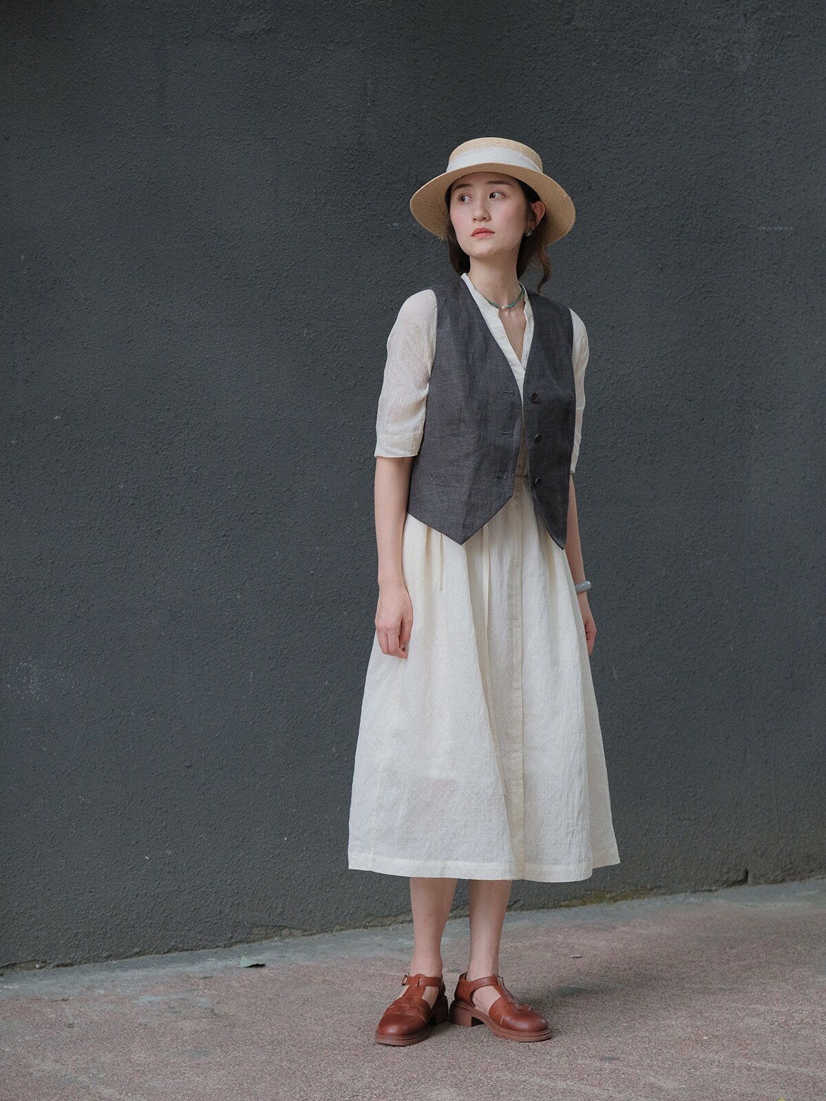 连衣裙复试面试套装 教师穿搭长裙 春通勤正装 图曼朵灰色背心裙女装