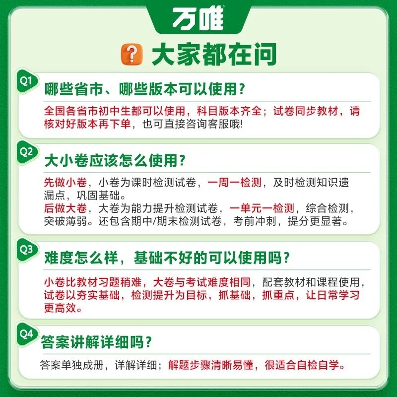 ⭐小红书推荐⭐七年级八年级九年级上册下册语文数学英语物理化学生物地理初一初二初三练习试卷测试卷全套万维四门 2026万唯大小卷人教北师大版,所属中学教辅分类,由淘宝网挑选推荐!小红书抖音网红同款!哪里有卖七年级八年级九年级上册下册语文数学英语物理化学生物地理初一初二初三练习试卷测试卷全套万维四门 2026万唯大小卷人教北师大版和多少钱质量怎么样✅。