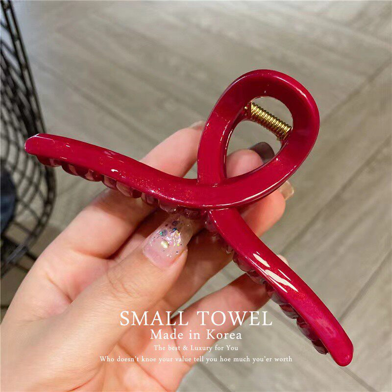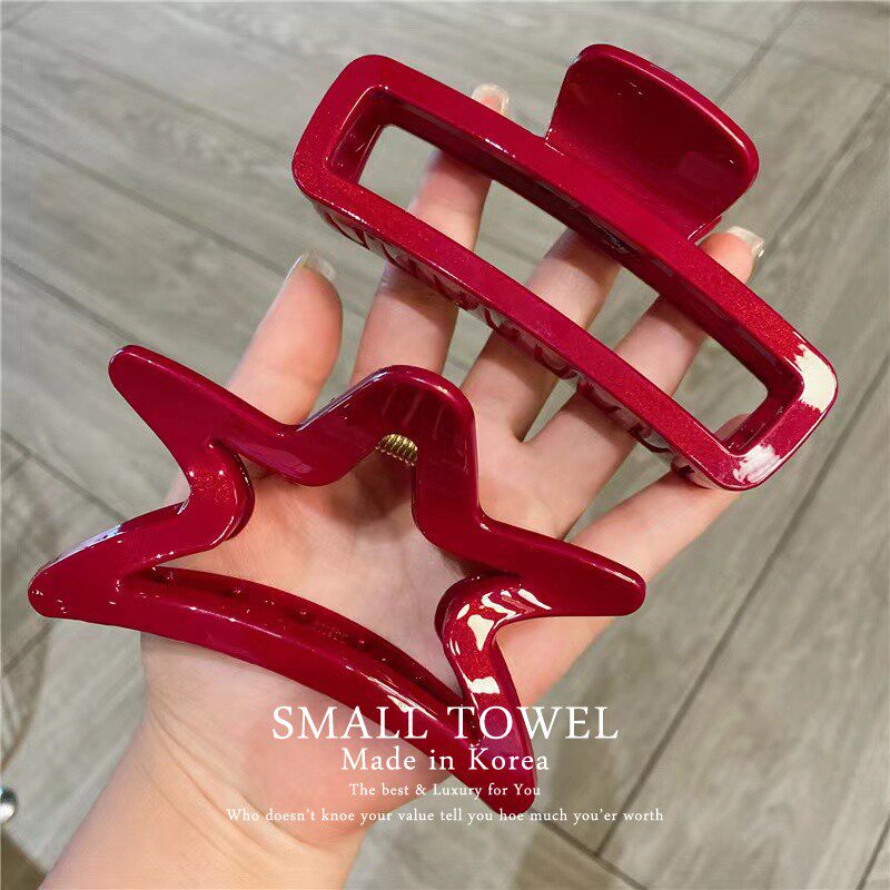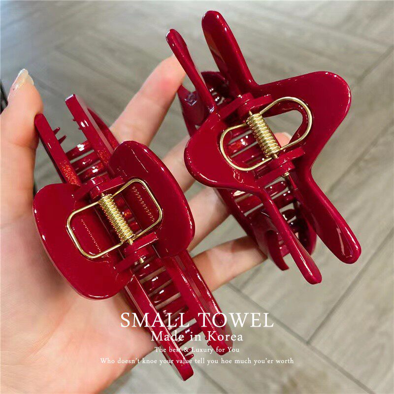 韩国东大门进口高级安可拉红色大号鲨鱼夹后脑勺盘发抓夹发卡头饰