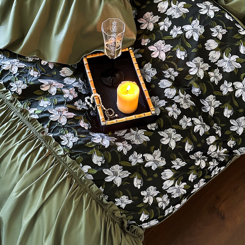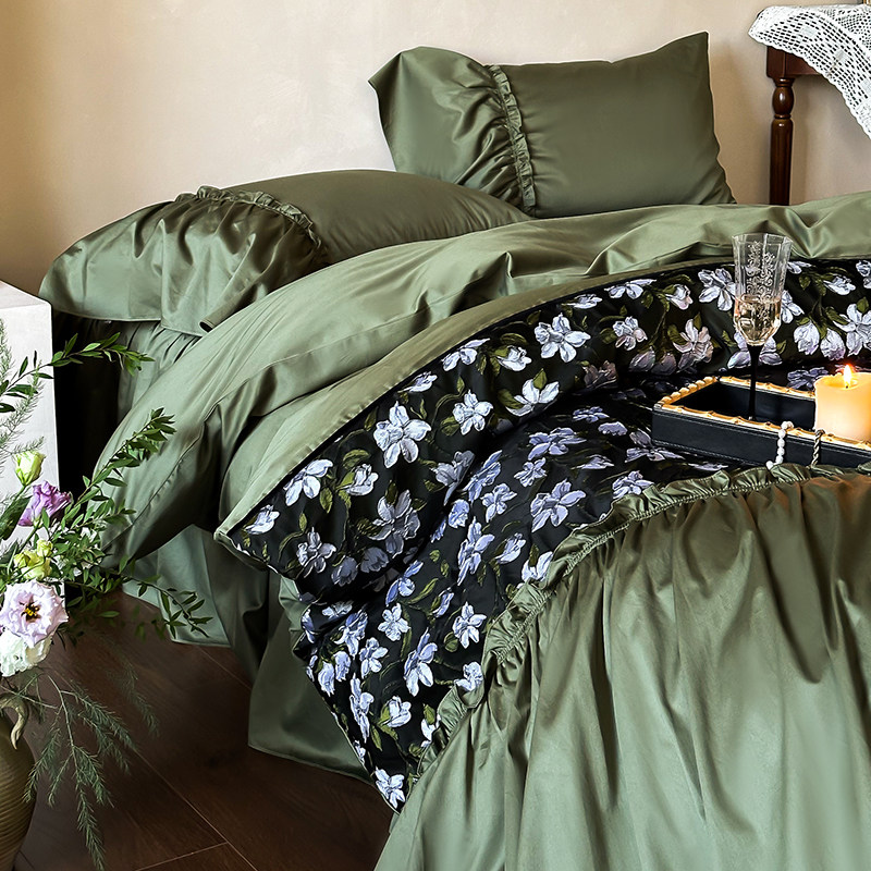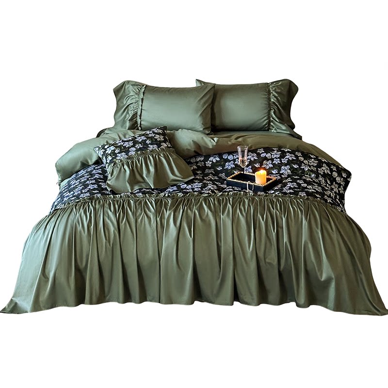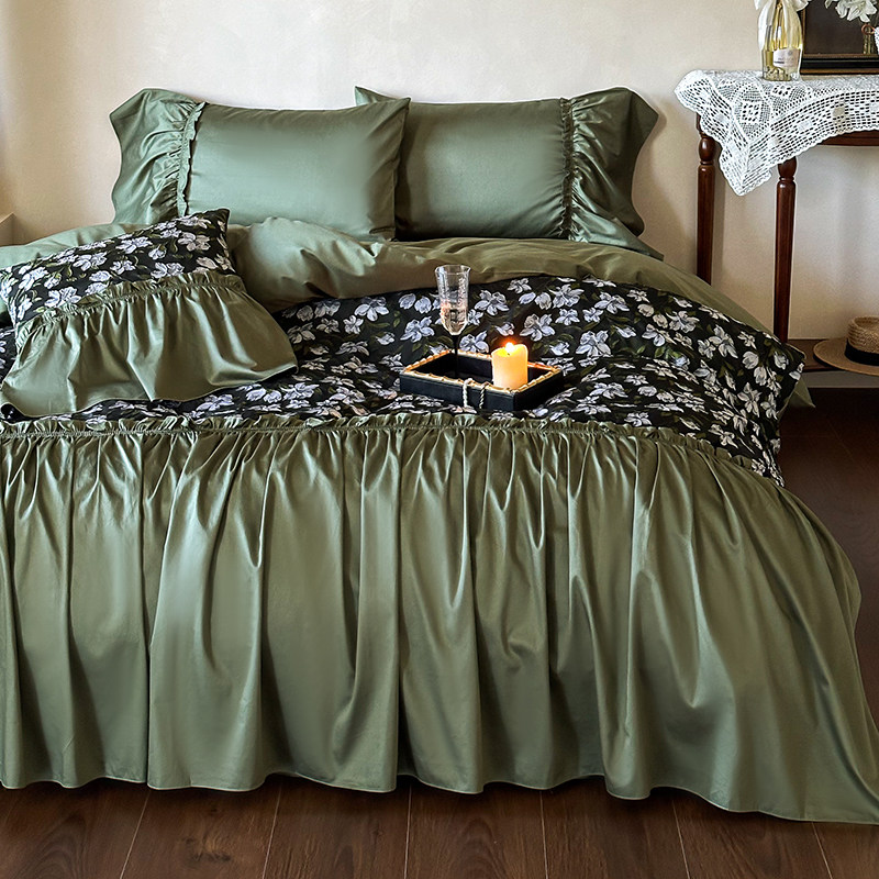 浮雕提花100支贡缎长绒棉纯棉四件套公主风全棉床单床裙床笠4 法式