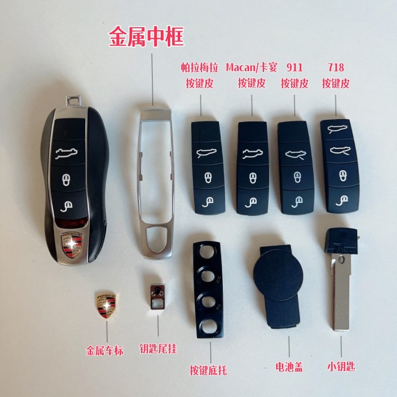 为您提供商品适用保时捷卡宴按键皮macan金属中框帕拉梅拉钥匙底壳718车标9扣的详细介绍,