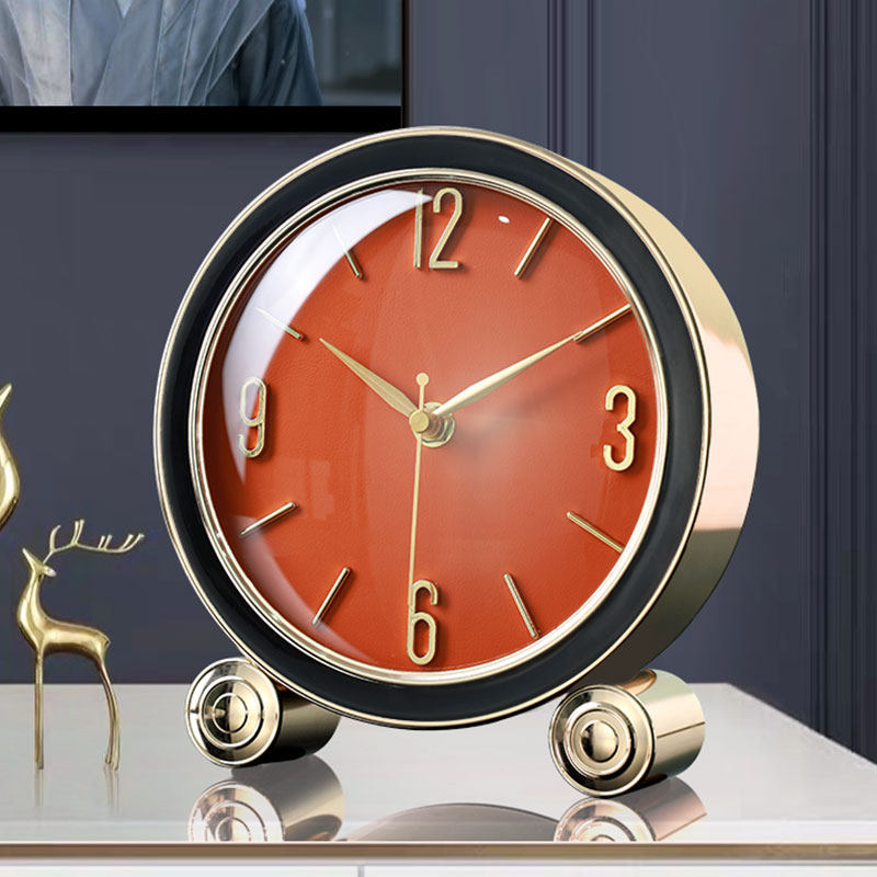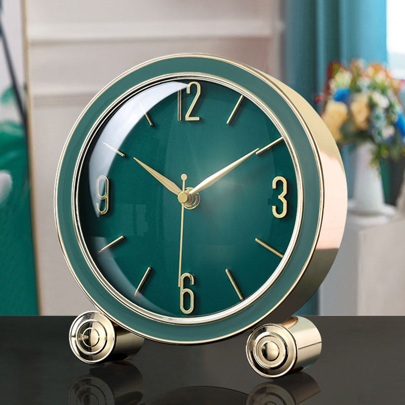 座钟客厅卧室欧式 简约台钟 静音床头时尚 闹钟复古钟表金属5寸台式