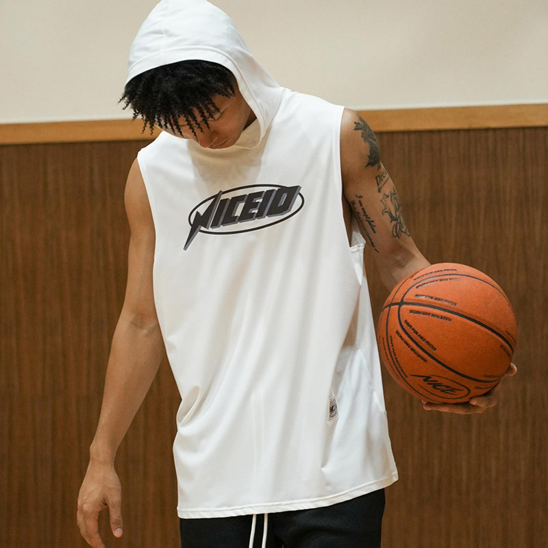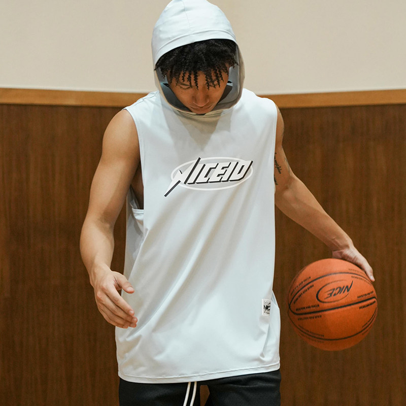NICEID 上衣 NICE连帽篮球背心投篮服热身训练服透气运动宽松无袖由