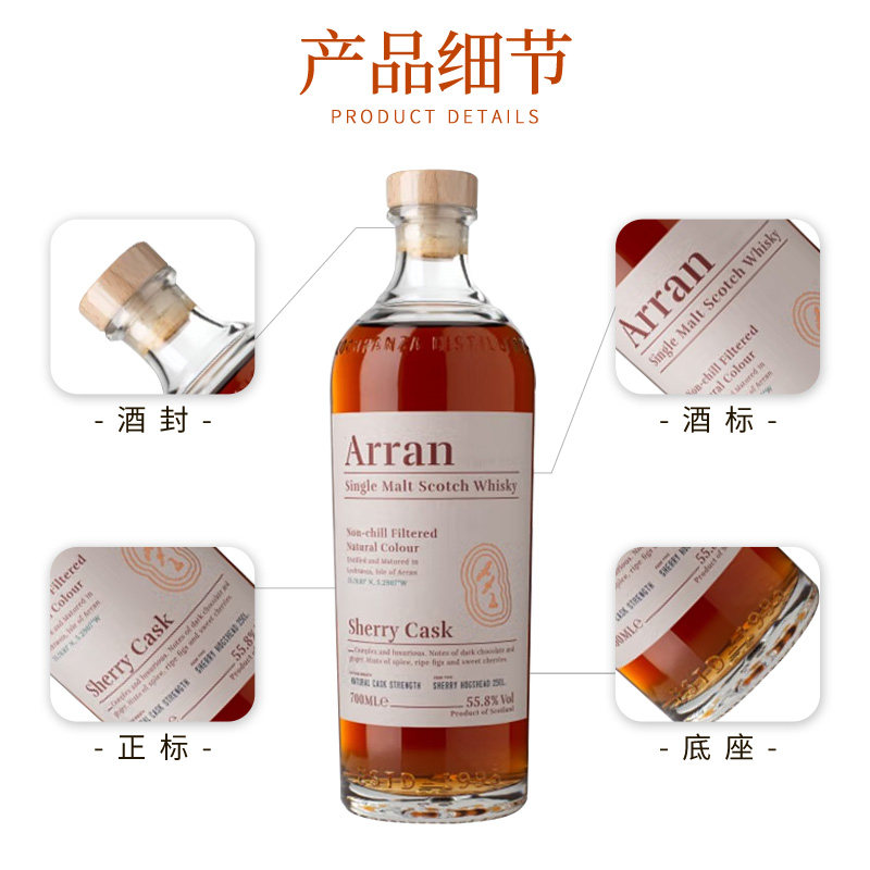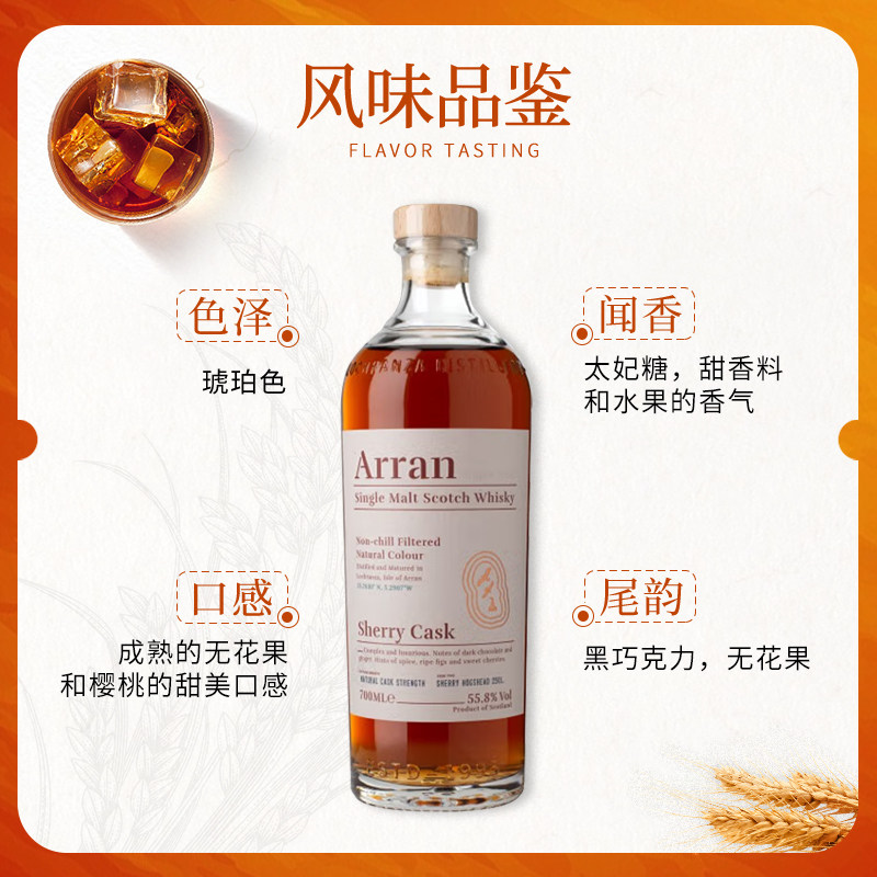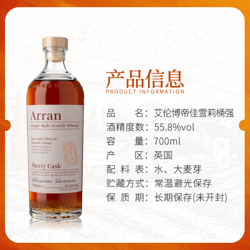 为您提供商品Arran艾伦博帝佳雪莉桶强700ML苏格兰单一麦芽威士忌海外进口洋酒的详细介绍,