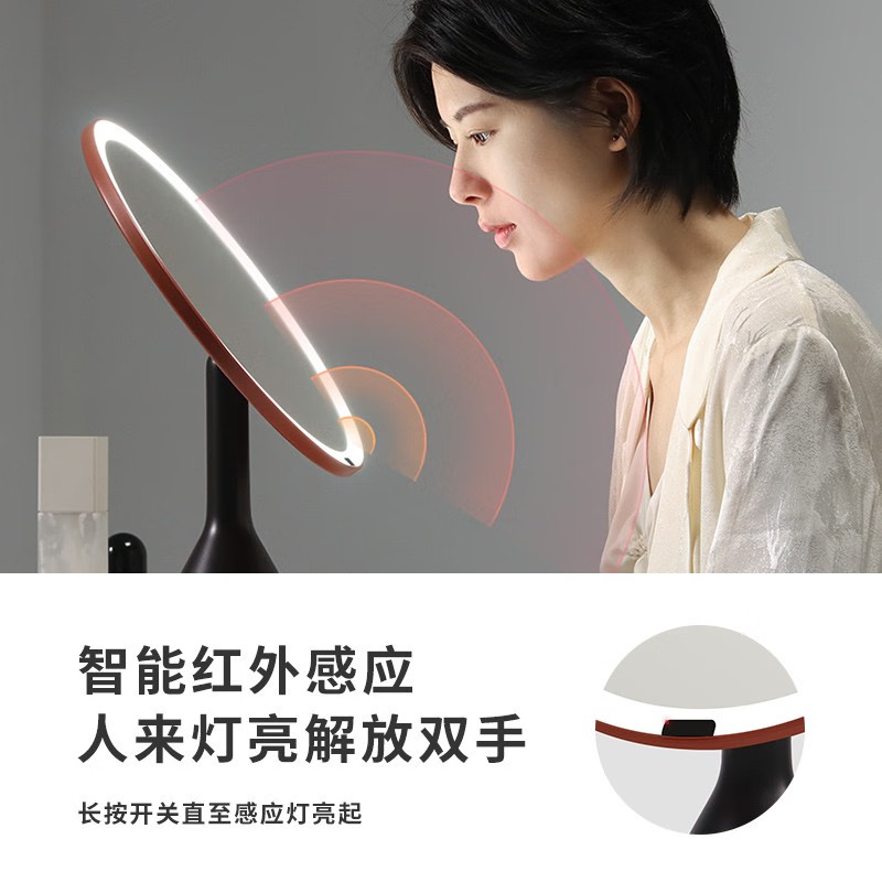 带灯智能高清梳妆镜桌面补光led美妆化妆镜子网红 MUID大圆镜台式