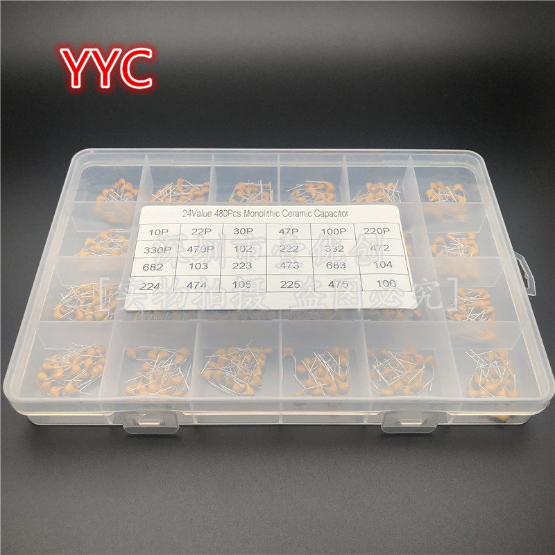 480只24种各20个独石电容盒套装 10UF50V 无极陶瓷电容样品盒10PF由