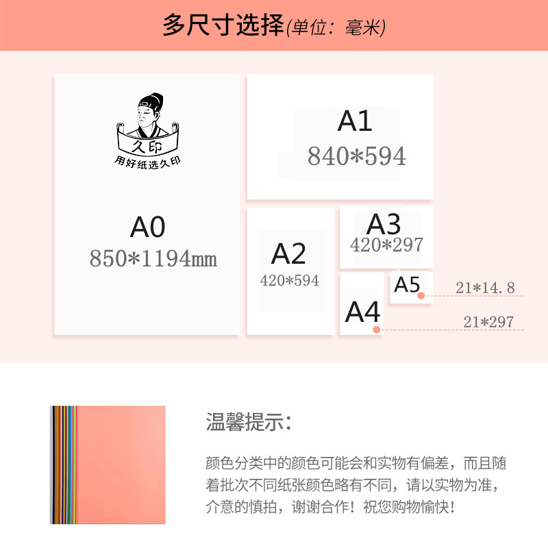a4彩色打印复印纸办公用纸复印纸100张粉色大红色彩色学生DIY益智手工折纸白色纸折纸加厚彩打纸混色a4纸红纸
