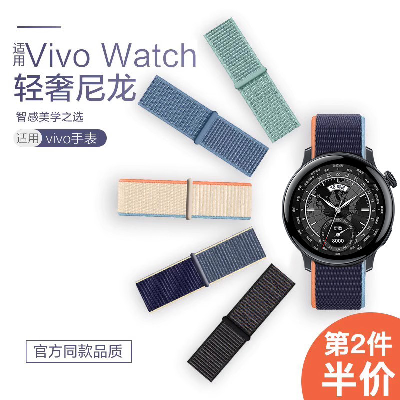 配件 适用vivowatch5高定纤维尼龙回环表带watchGT2透气watch3帆布腕表带watch2智能运动IQoo手表腕带非原装由