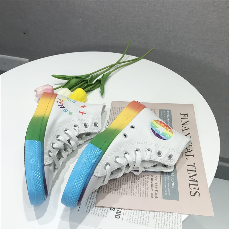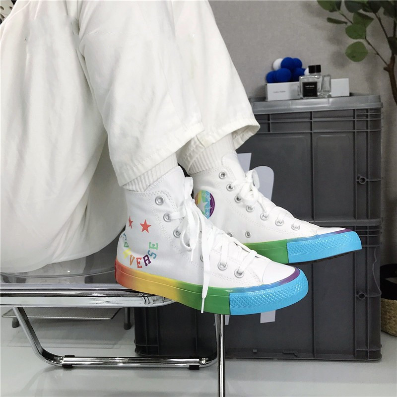 168123C Converse匡威Smile彩虹字母笑脸情侣高帮休闲运动帆布鞋由