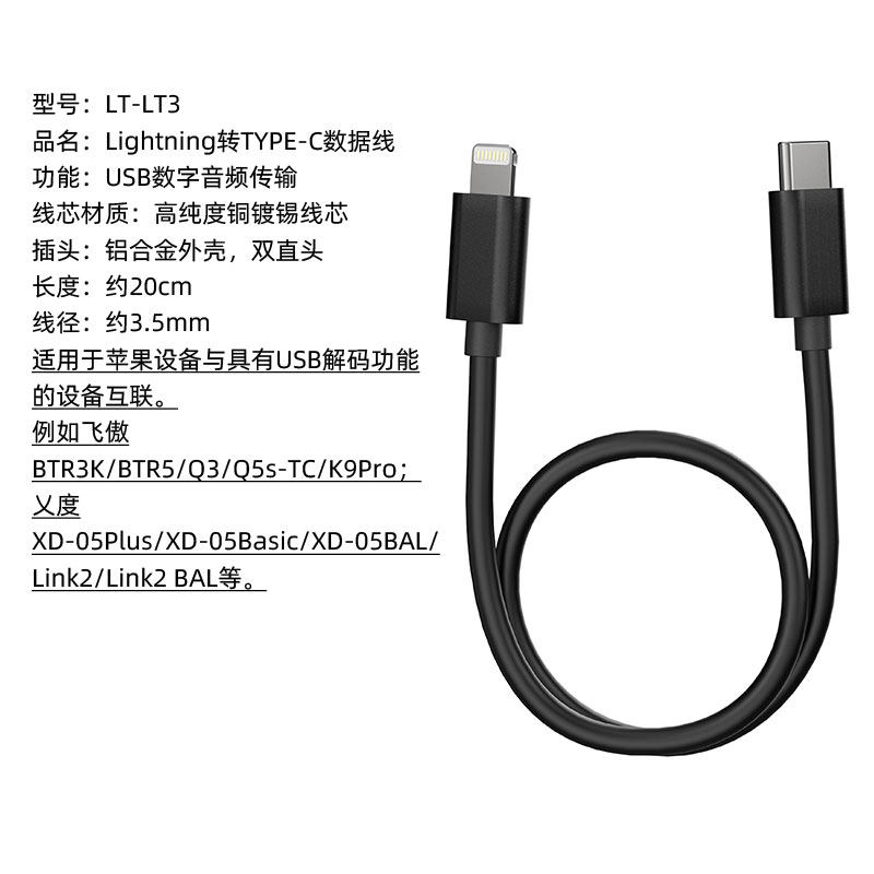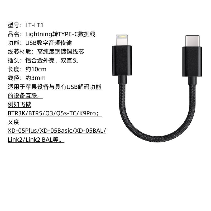 为您提供商品FiiO飞傲LT Type C转接Lightning闪电解码 数据线头适用于苹果 LT1的详细介绍,