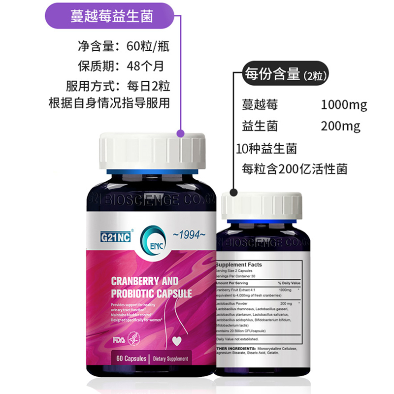 私护私密保养 益恩喜enc进口蔓越莓益生菌胶囊女性高浓缩60粒装由