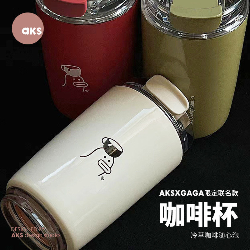 GAGA联名款 保温杯随行杯女咖啡杯便携杯子不锈钢水杯 COFFEE AKS