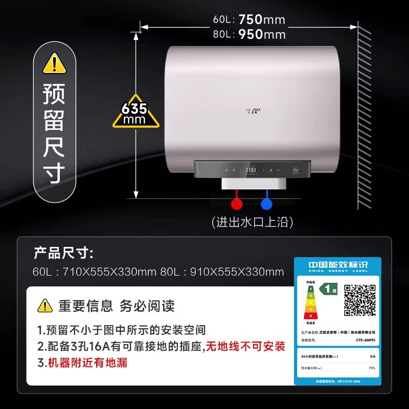 为您提供商品AO史密斯佳尼特电热水器家用智能恒温双胆速热金圭60升HT5新品的详细介绍,