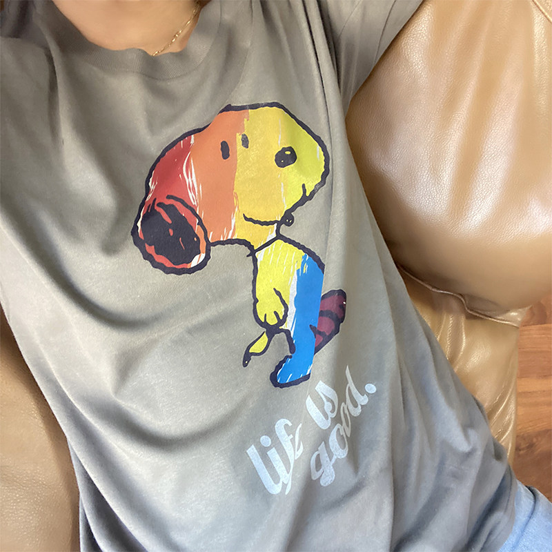2021新款 女打底百搭上衣 炭色卡通Snoopy印花T恤女宽松舒适短袖由