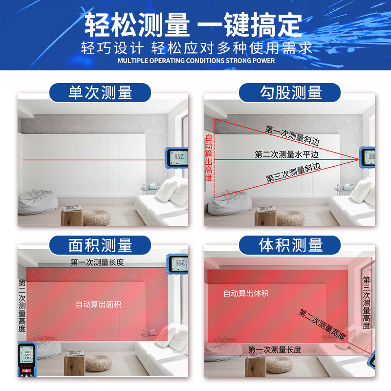 测量仪器 激光测距仪红外线测量仪工业级高精度锂电量房神器手持式