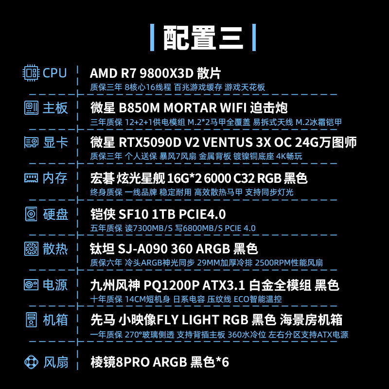 为您提供商品V2万图师 5090D 5080魔龙 海景房游戏主机 绝影 映像FLY 9800X3D的详细介绍,