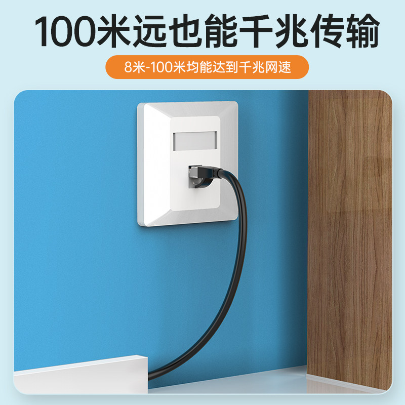 千兆网线家用10m20m30米超六类电脑连接路由器高速宽带网络线监控由